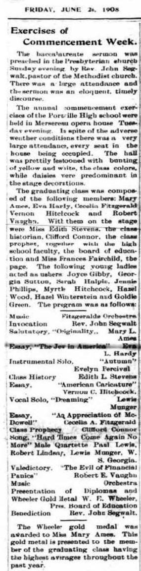 Note: We do not have a photograph for this year's class. An article that ran in the Portville