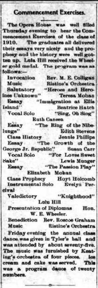 Review newspaper is shown below. Commencement was held on Thursday, June 23, 1910.