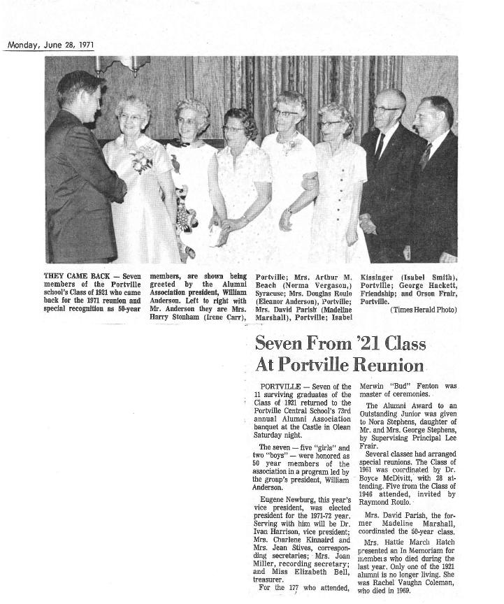 Portville High School ~ Class of 1921 ~ 50 Year Reunion