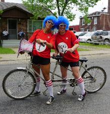 Wounded Warrior Clowns Wendy Van Curen (Thing 1) and Mary Kichman (holding the flag)