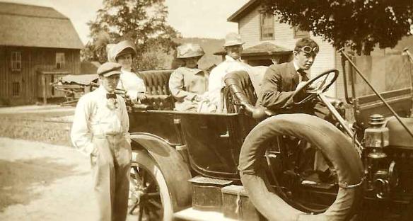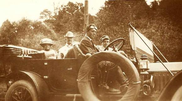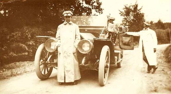 John E. Dusenbury (standing in front), Earl Henderson (chauffeur), Donald Dusenbury (seated