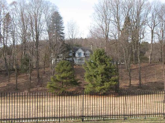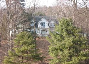 front of the house, peering down the hill to the