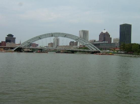 | | land and was routed through downtown Rochester using an aqueduct carrying it over Genesee River.