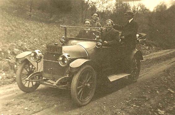 1915 Alfred Reuben Hatch (behind the wheel), George and Dana Scutt, Wallace Fox