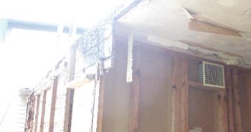 two sections of the building, seeping in from around the chimney. The damage was significant and