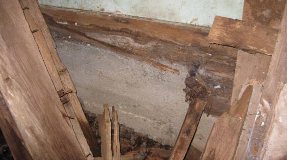 The next task was to deal with the floor. As they tore out the rotten parts, we discovered that there