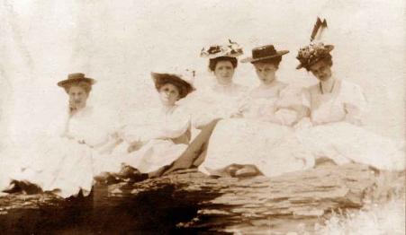 Katherine Dusenbury and her girlfriends at the Bear's Cave about 1910 (top of the hill behind Portville Central School)